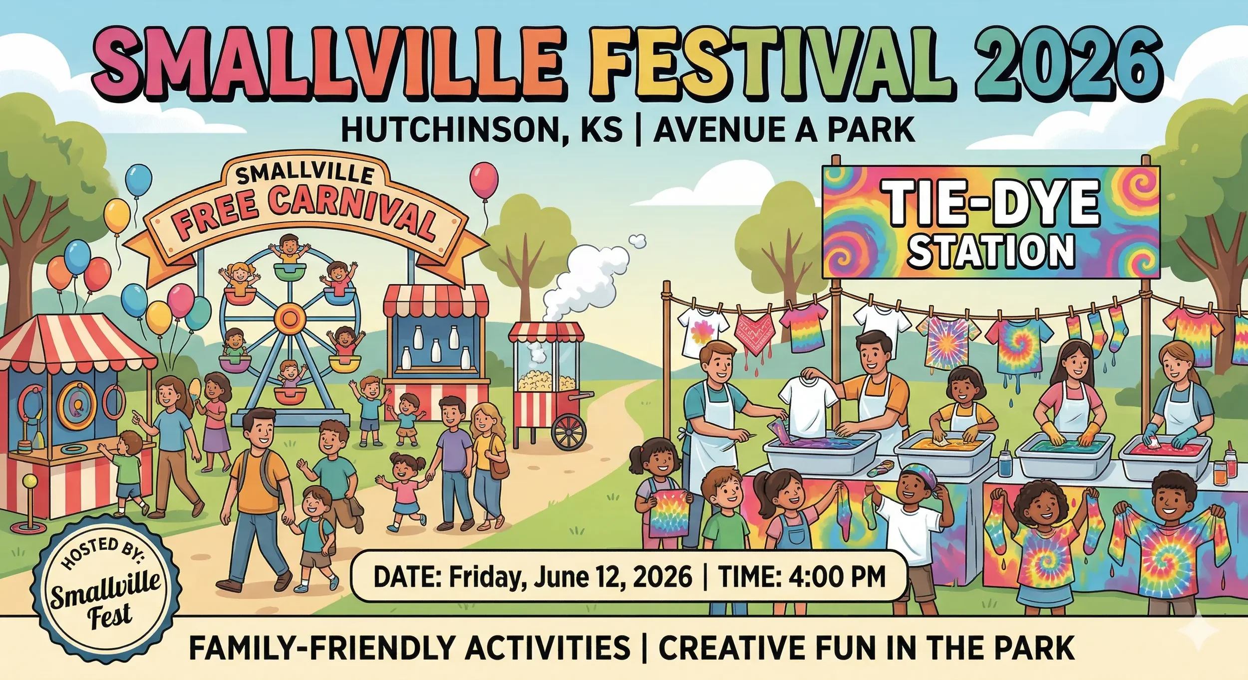 Smallville Festival 2026 is a three-day community celebration held June 11–13 in Hutchinson, Kansas. Inspired by the legacy of Clark Kent and Smallville, which inspired him to become Superman, the festival brings together local businesses, organizations, artists, and volunteers to create a weekend filled with markets, live music, movies, competitions, family activities, and community events.